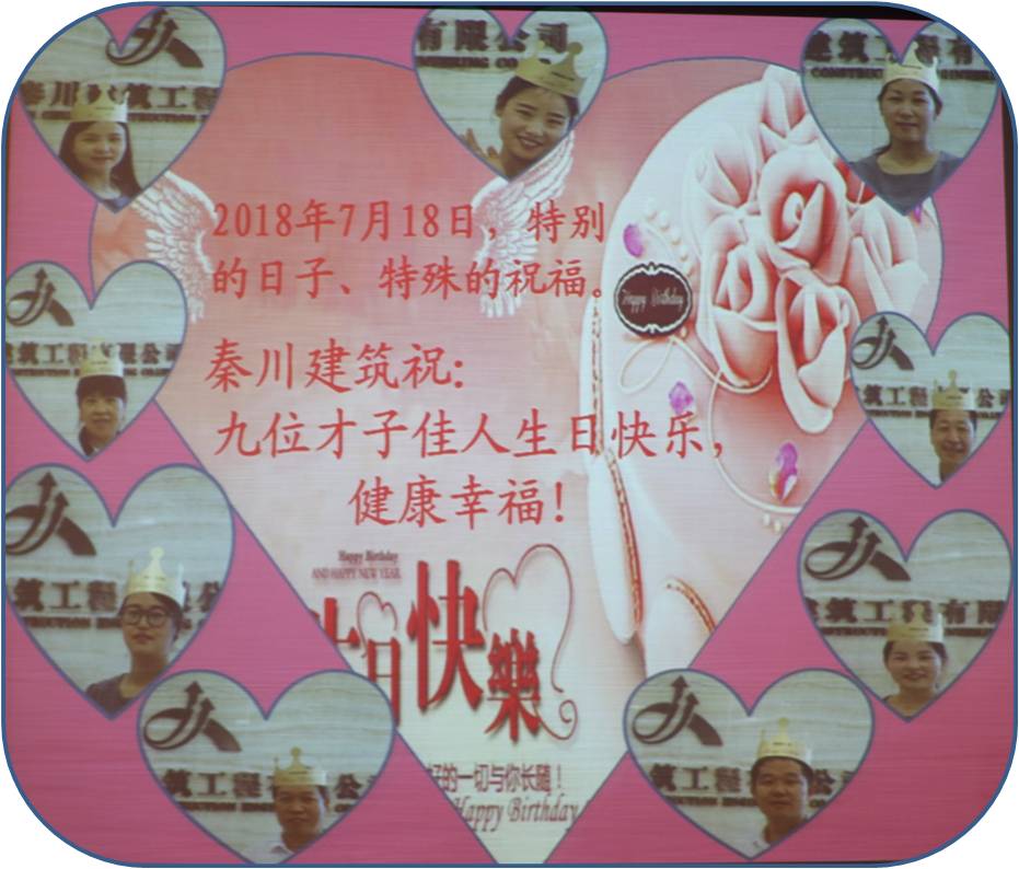 2018年7月18日,陜西秦川建筑工程有限公司迎來了2018年度第一次員工生日Party,本次活動(dòng)由總經(jīng)理助理王江濤負(fù)責(zé)組織、策劃。