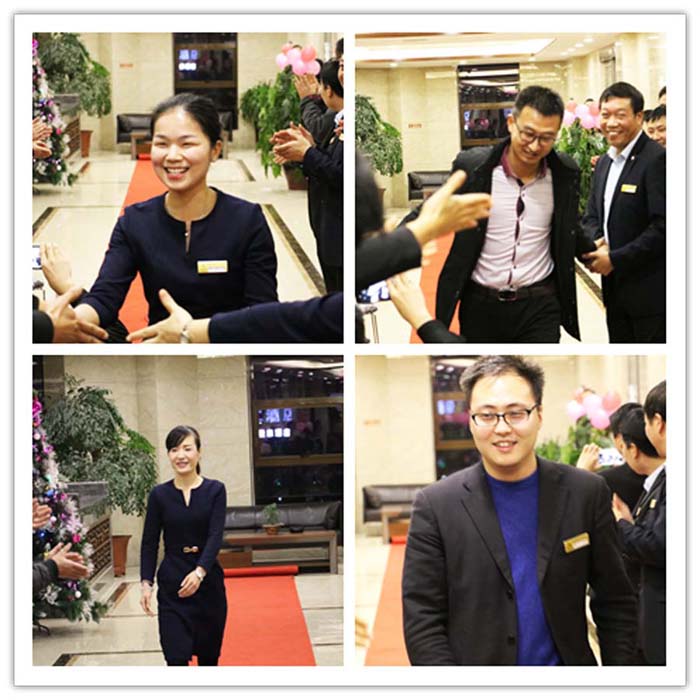 主持人宣布生日宴會(huì)正式開始,公司的15位壽星伴隨著優(yōu)美的音樂(lè),踏著紅毯,