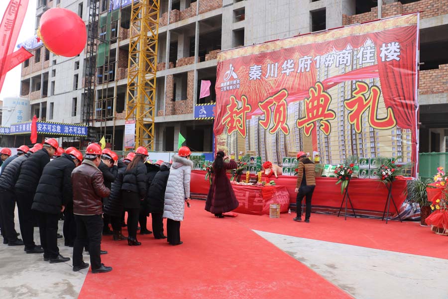 2018年1月23日,由陜西秦川建筑工程有限公司承建的“渭南秦川·華府1#商住樓項(xiàng)目”主體結(jié)構(gòu)順利封頂,公司領(lǐng)導(dǎo)及全體員工、項(xiàng)目負(fù)責(zé)人及各班組人員參加了此次封頂?shù)涠Y,公司領(lǐng)導(dǎo)特為日夜奮戰(zhàn)在一線的建筑工人們送上慰問品。