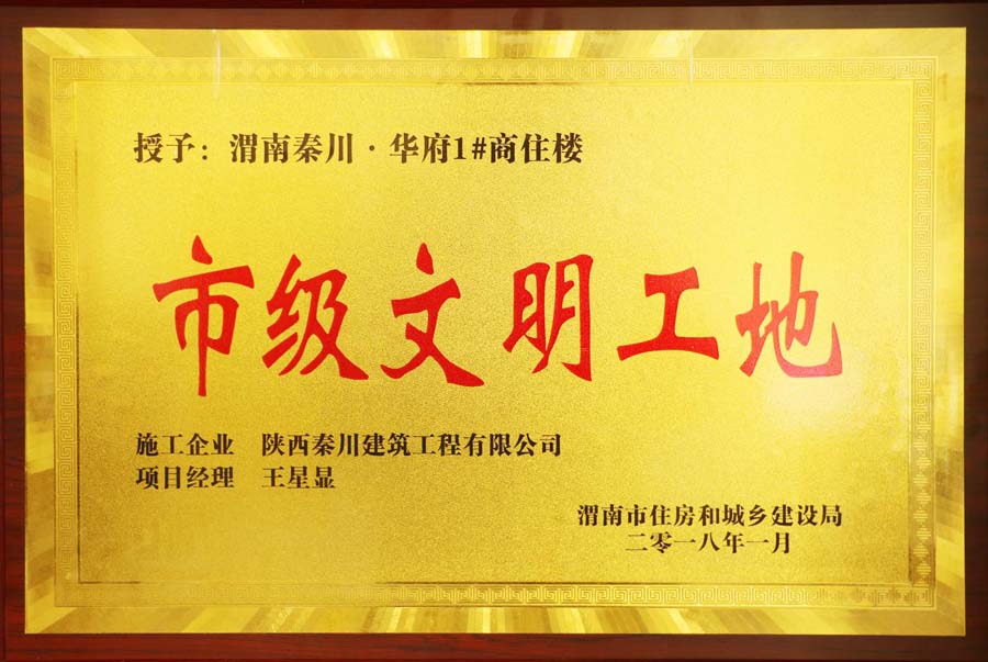 熱烈祝賀我公司承建的渭南秦川·華府1#商住樓項(xiàng)目順利封頂,并榮獲“市級(jí)文明工地”榮譽(yù)!